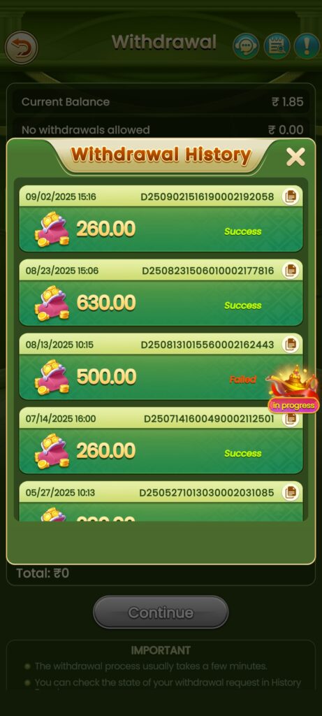 मैक्सिमम विड्रोल आप SVIP 777 YONO मे 50000 से लेकर 1 लाख तक का ले सकते हो और विड्रोल आप बैंक और UPI में दोनों में कर सकते हो आपका पैसा आपके BANK अकाउंट में आने में 30 मिनट से लेकर एक-दो घंटे का समय लगता है तो कोई टेंशन लेने की जरूरत नहीं है आपका पैसा 30 मिनट से लेकर 1 घंटे के अंदर आपके बैंक अकाउंट में क्रेडिट कर दिया जाएगा SVIP 777 APK कंपनी की तरफ से बाकी मैं इस एप्लीकेशन से जो भी अर्निंग और विड्रोल लिया है वह मैंने ऊपर स्क्रीनशॉट ऐड कर दिया है देख लो आप |